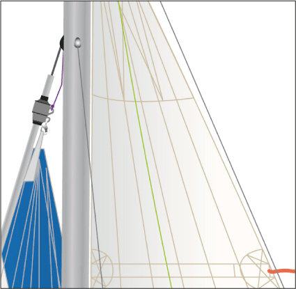 Rollfock, Wanten-Fixierung, Segelschnitt.